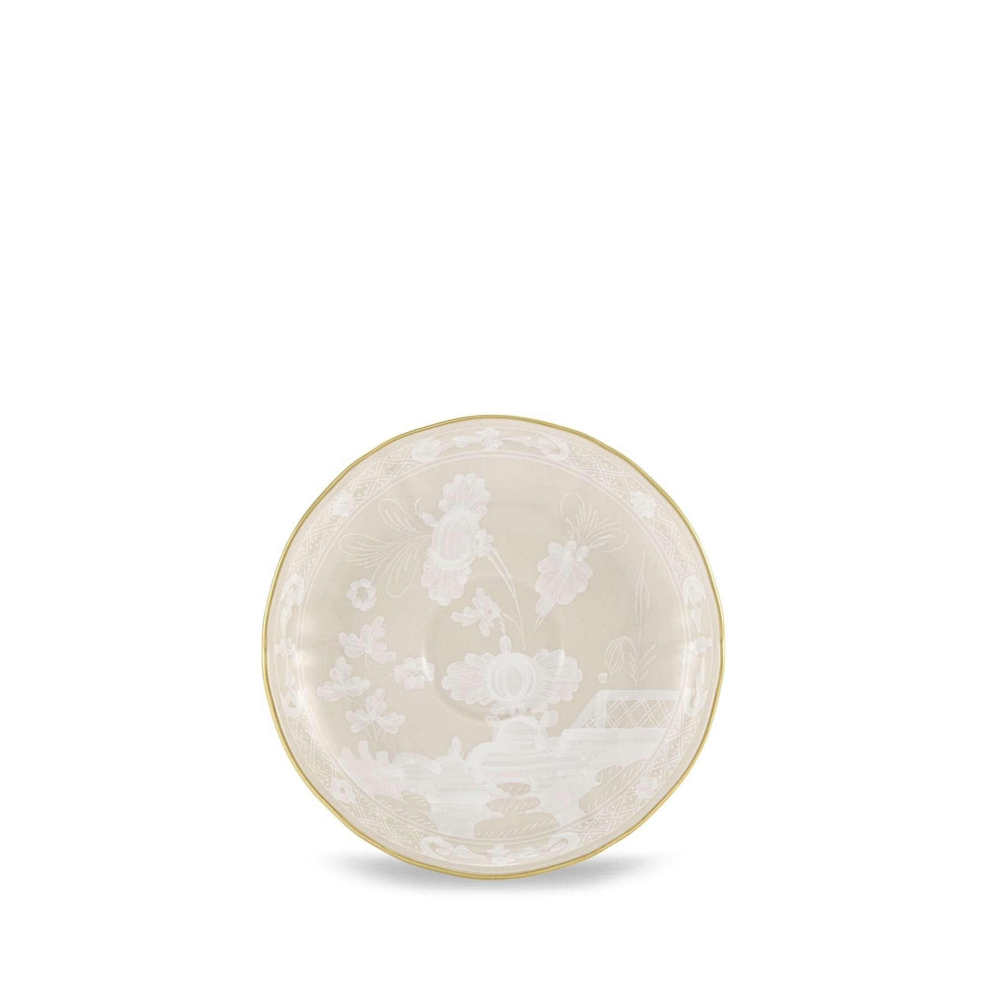 Meringa süslemeli ve altın iplik işlemeli porselen kahve tabağı. Oriente Italiano Koleksiyonu.